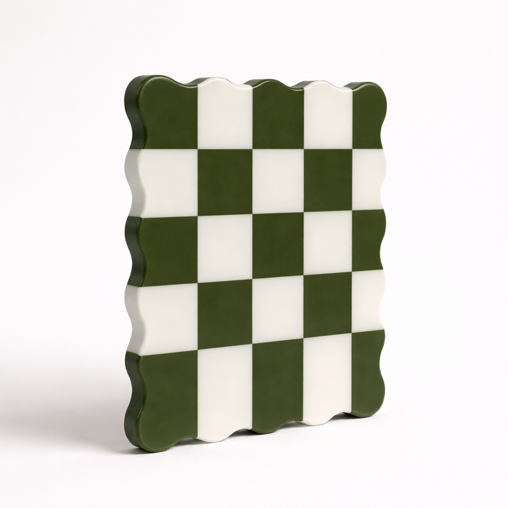 Bold, graphic, and unapologetically modern - Matcha blends deep green tones in a striking checkerboard pattern. Crafted from 100% recycled UHMWPE plastic, it’s durable, food-safe, and impossible to ignore.